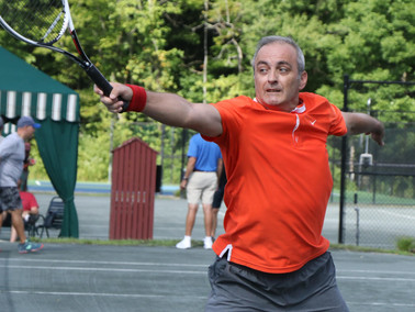 Wael valiantly fought back in the match (not literally, though, for Wael is, if nothing else, a gentleman of the 3.0 courts when it comes to this gentleman's game), but the power and consistency of Toledo's #1 singles player, combined with Wael playing for the first time ever on the slick clay courts of CVAC, proved to be too much, and Andrew, Toledo's favorite 3.0 son, thus evened up the match at 2-2.